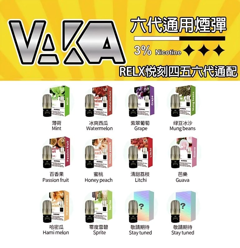 VAKA六代煙彈 通用悅刻Relx四五六代主機 3顆價 買15顆送1顆